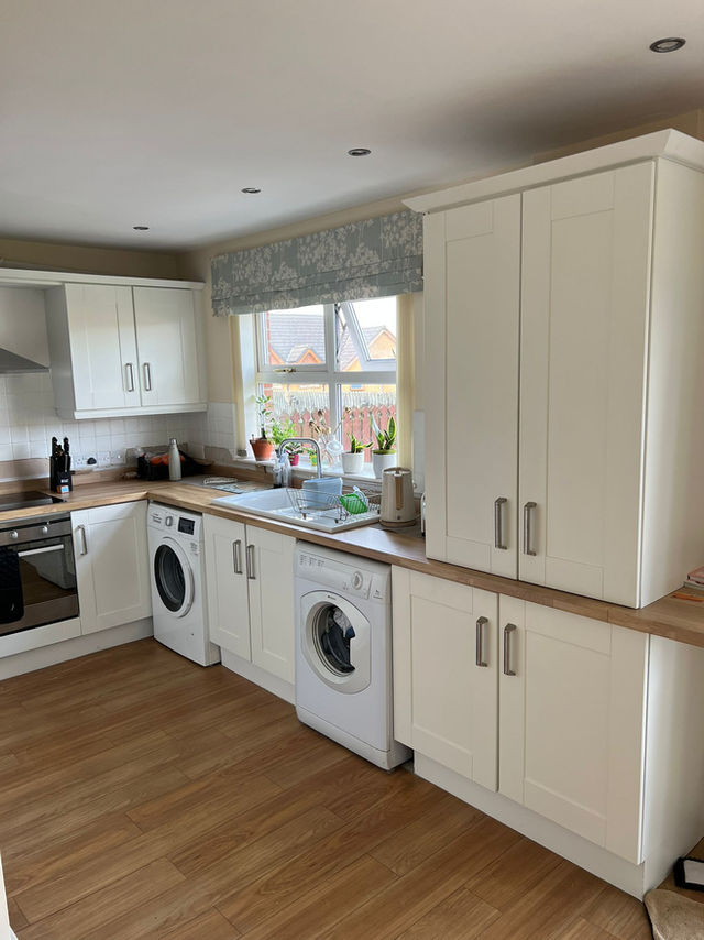 Then, I spray the carcass on-site for a seamless finish. You have the freedom to choose any colour and sheen, and I can assist with new handles or worktops to complete the look. My hard-wearing factory finish ensures durability for any surface.